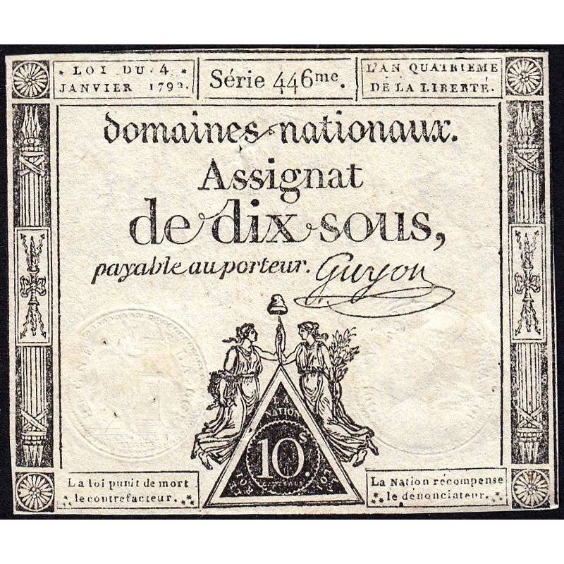 Assignat 23a - 10 sous - 4 janvier 1792 - Série 446 - Etat : TTB+