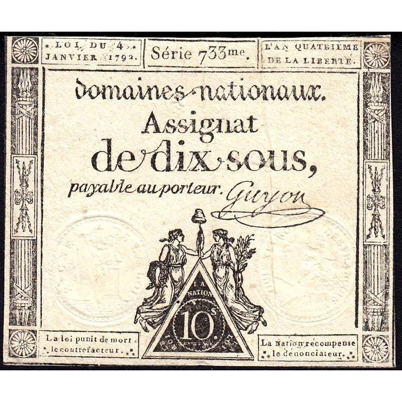 • Assignat 23a - 10 sous - 4 janvier 1792 - Série 733 - Etat : TTB+