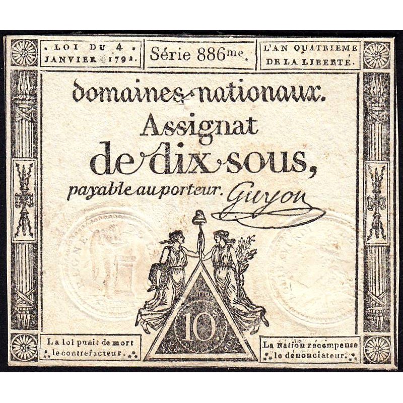 • Assignat 23a - 10 sous - 4 janvier 1792 - Série 886 - Etat : TTB+