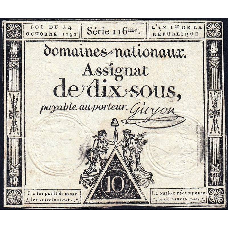 • Assignat 34a - 10 sous - 24 octobre 1792 - Série 116 - Etat : TB+