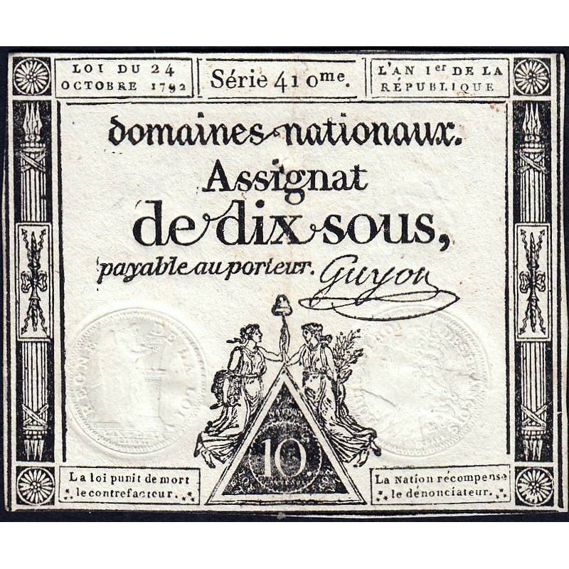 • Assignat 34a - 10 sous - 24 octobre 1792 - Série 410 - Etat : TTB