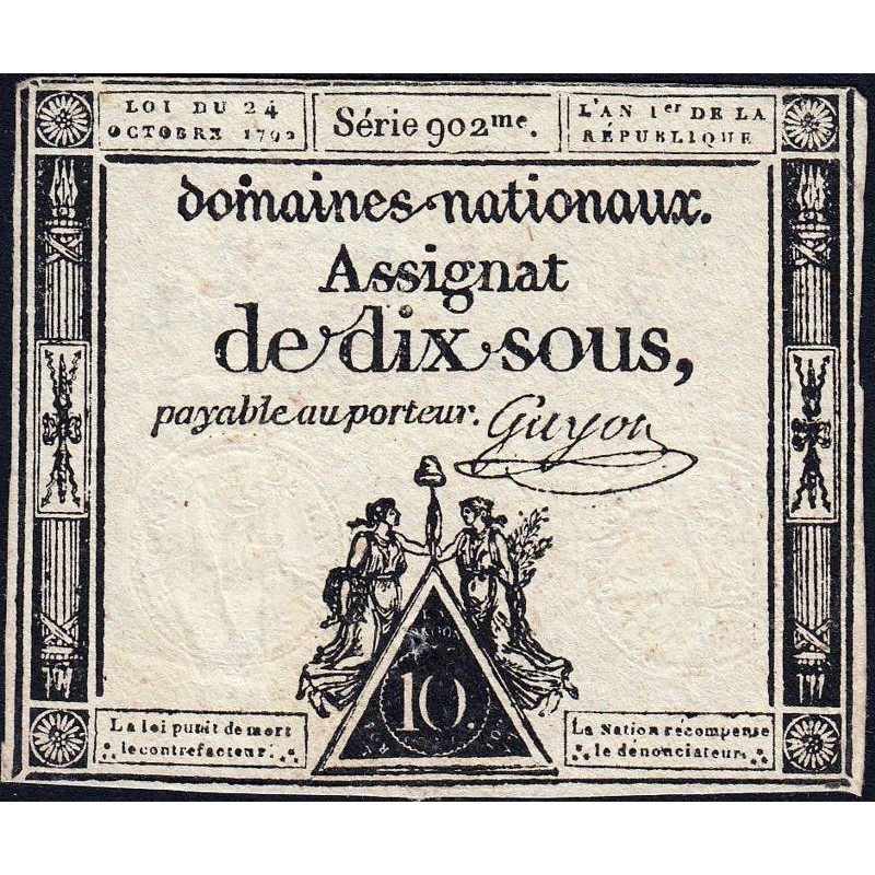 • Assignat 34a - 10 sous - 24 octobre 1792 - Série 902 - Etat : TB