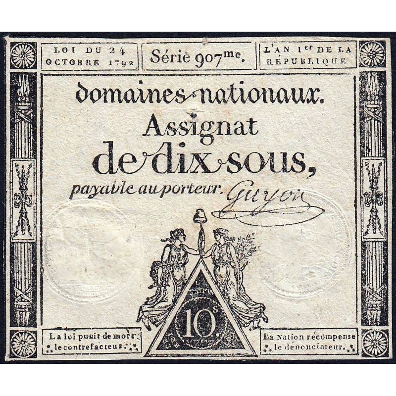 • Assignat 34a - 10 sous - 24 octobre 1792 - Série 907 - Etat : TB