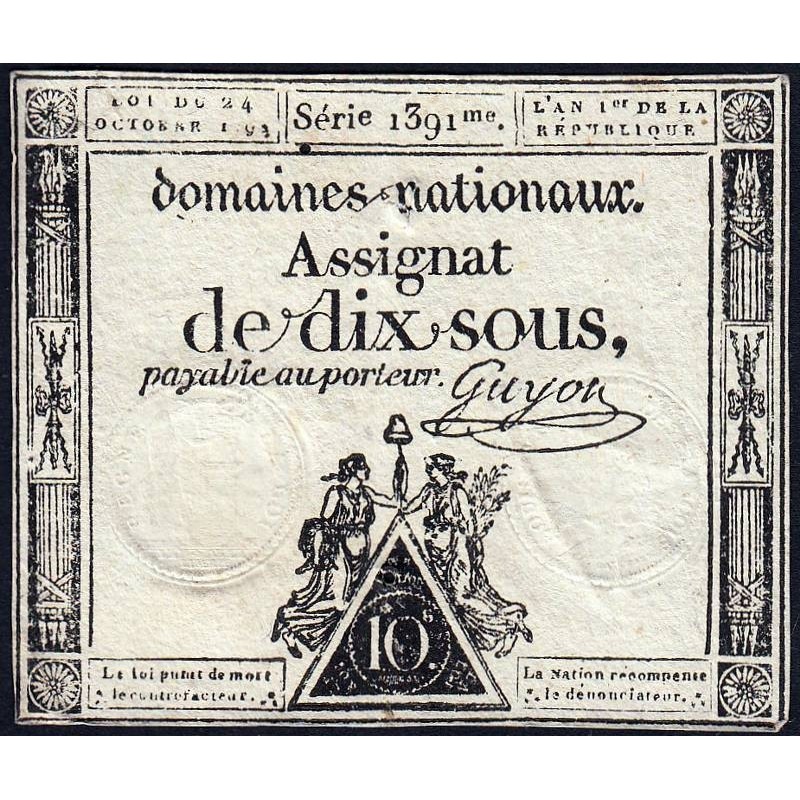 • Assignat 34a - 10 sous - 24 octobre 1792 - Série 1391 - Etat : TB+