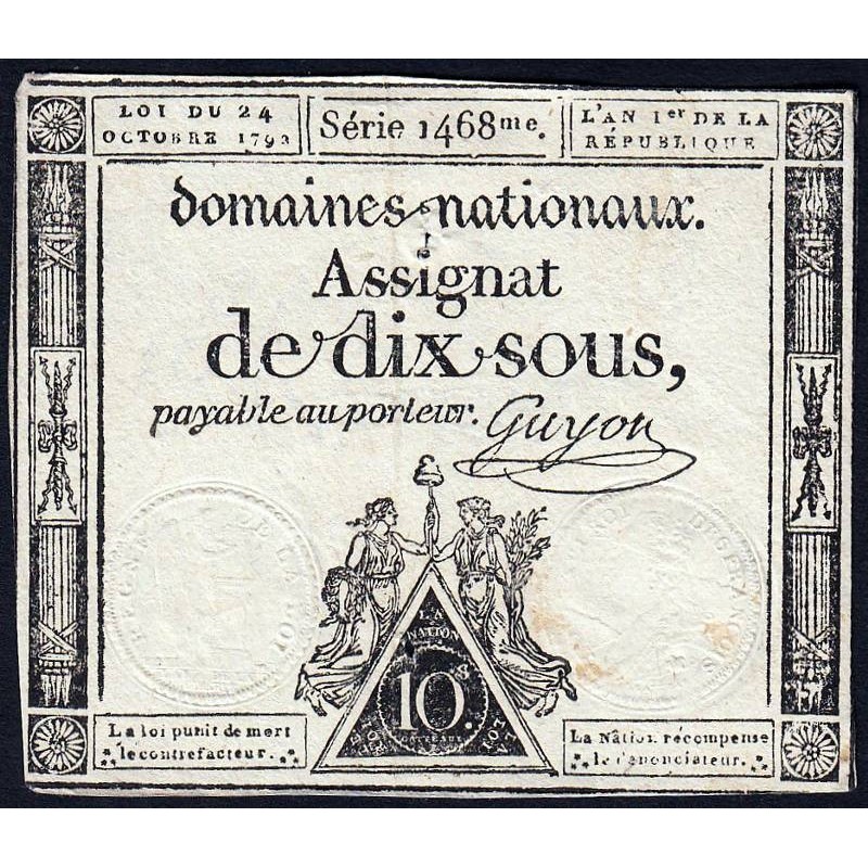 • Assignat 34a - 10 sous - 24 octobre 1792 - Série 1468 - Etat : TB+
