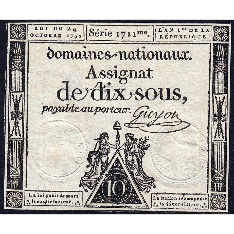 • Assignat 34a - 10 sous - 24 octobre 1792 - Série 1711 - Etat : TB+