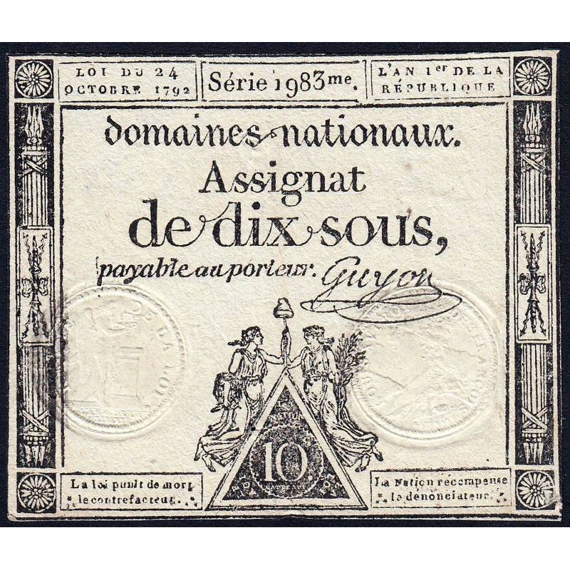 • Assignat 34a - 10 sous - 24 octobre 1792 - Série 1983 - Etat : TTB