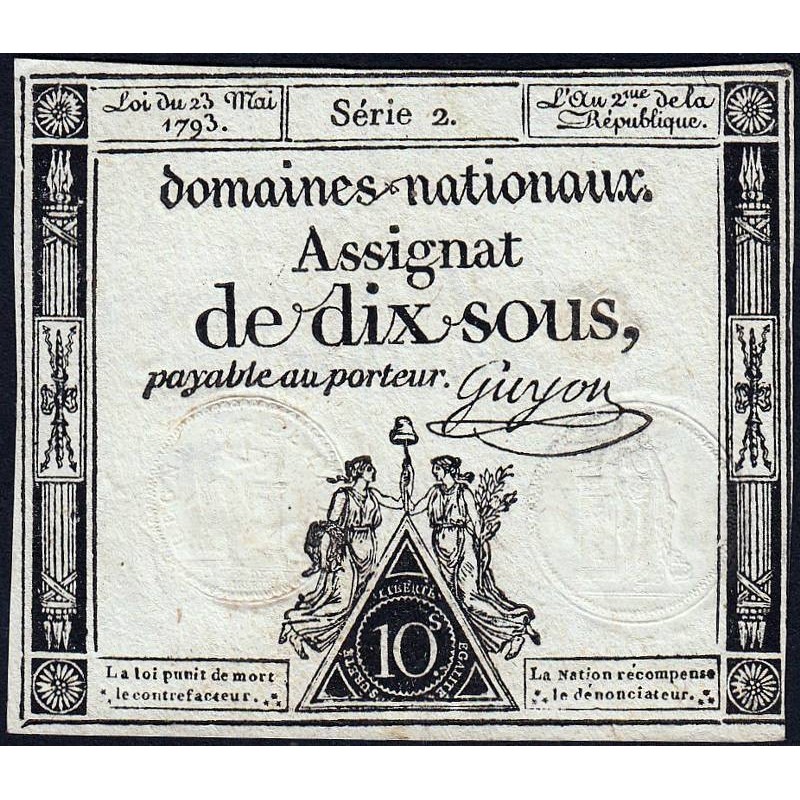 Assignat 40a - 10 sous - 23 mai 1793 - Série 2 - Filigrane royal - Etat : TTB+