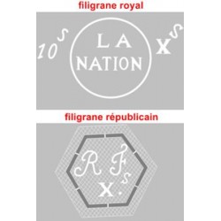 • Type a - Filigrane royal : Dans un cercle sur deux lignes LA NATION, à gauche du cercle 10 S et à droite X S