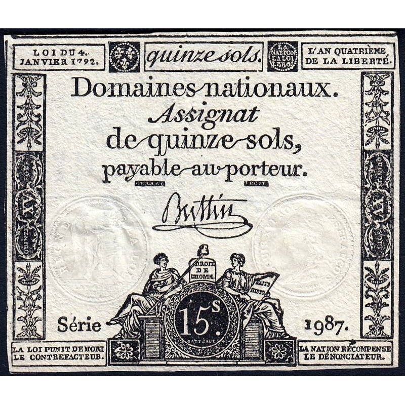 Assignat 24a - 15 sols - 4 janvier 1792 - Série 1987 - Etat : TTB+