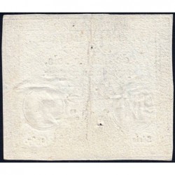 • Filigrane : Dans un cartouche surmonté d'une fleur de lys, à gauche 15 S, à droite N L R et au centre sur deux lignes LA NATION