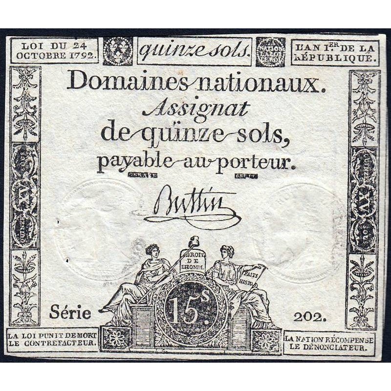 Assignat 35a - 15 sols - 24 octobre 1792 - Série 202 - Etat : TB+