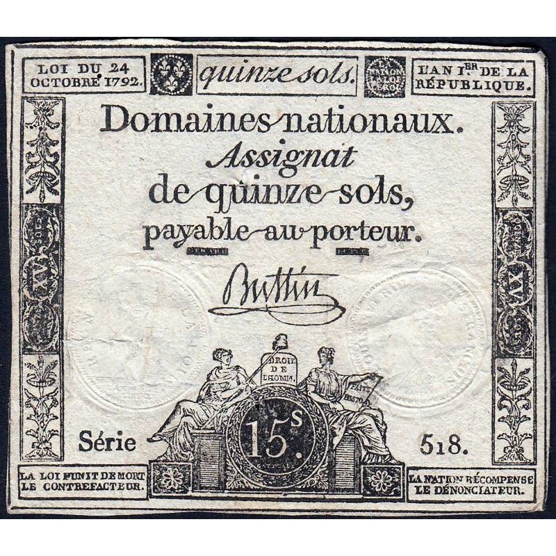 • Assignat 35a - 15 sols - 24 octobre 1792 - Série 518 - Etat : TB+