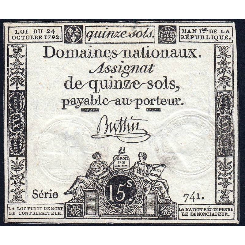 Assignat 35a - 15 sols - 24 octobre 1792 - Série 741 - Etat : TTB