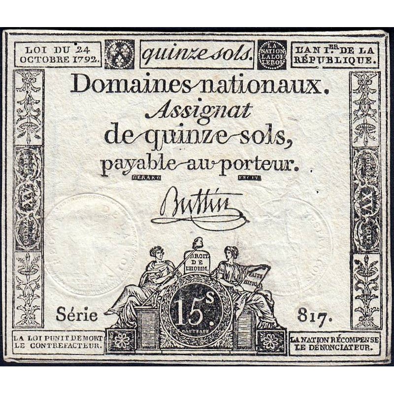 Assignat 35a - 15 sols - 24 octobre 1792 - Série 817 - Etat : TTB