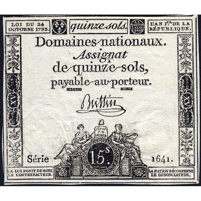 Assignat 35a - 15 sols - 24 octobre 1792 - Série 1641 - Etat : TTB+
