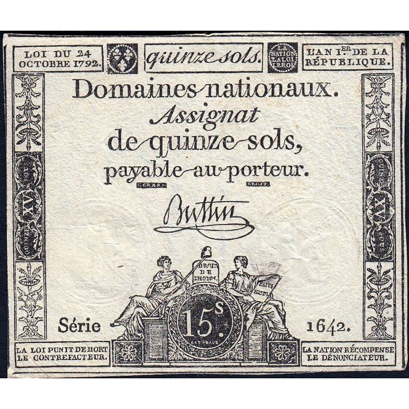 Assignat 35a - 15 sols - 24 octobre 1792 - Série 1642 - Etat : TTB