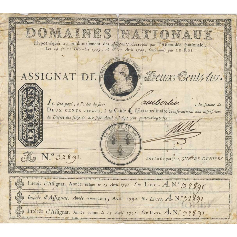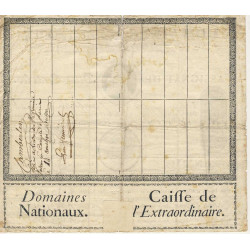 Référence du Catalogue Général des Assignats Français : Ass-01a (type complet avec les trois coupons d'intérêt)