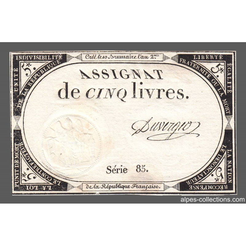 • Assignat 46a - 5 livres - 10 brumaire an 2 - Signature 41 - Etat : TTB+
