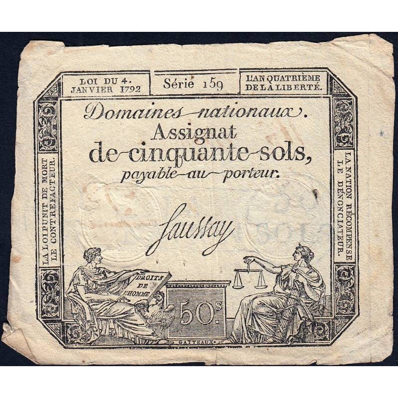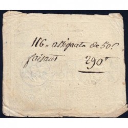 Au dos calcul en livres : 1 livre = 20 sols / 116 assignats de 50 sols représentent 290 livres