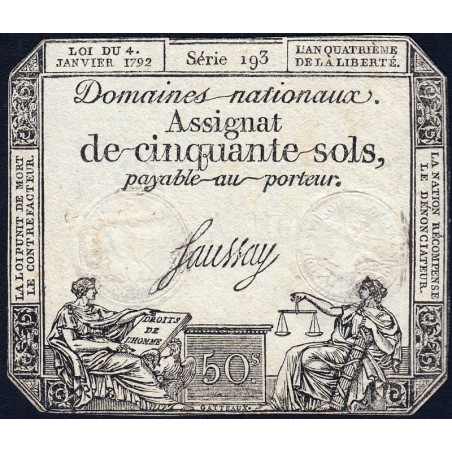 Assignat 26a - 50 sols - 4 janvier 1792 - Série 193 - Etat : TTB