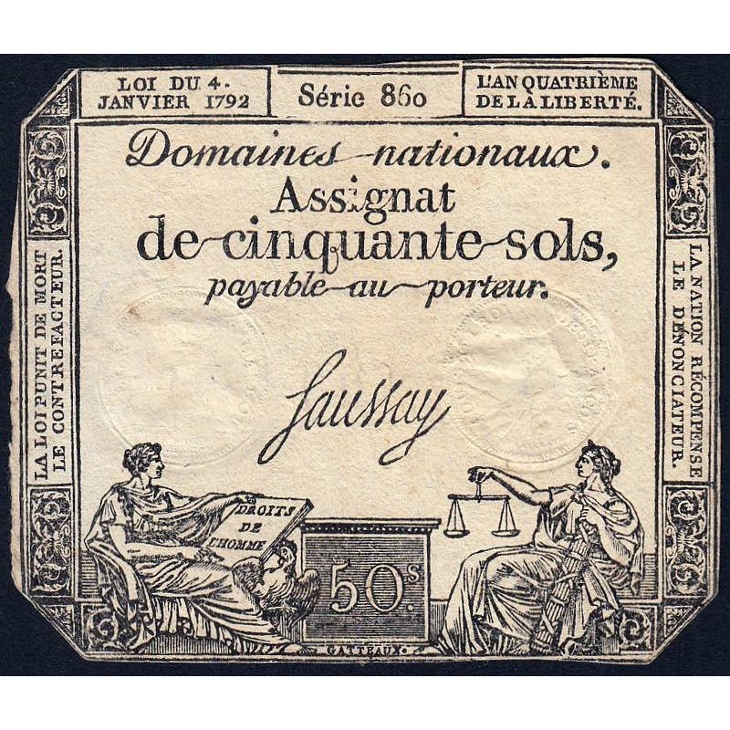 Assignat 26a - 50 sols - 4 janvier 1792 - Série 860 - Etat : TB