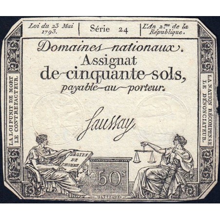 • Assignat 42a - 50 sols - 23 mai 1793 - Série 24 - Filigrane royal - Etat : TTB