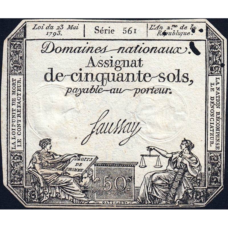 • Assignat 42b - 50 sols - 23 mai 1793 - Série 561 - Filigrane républicain - Etat : TB