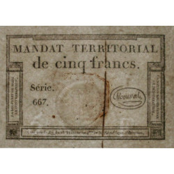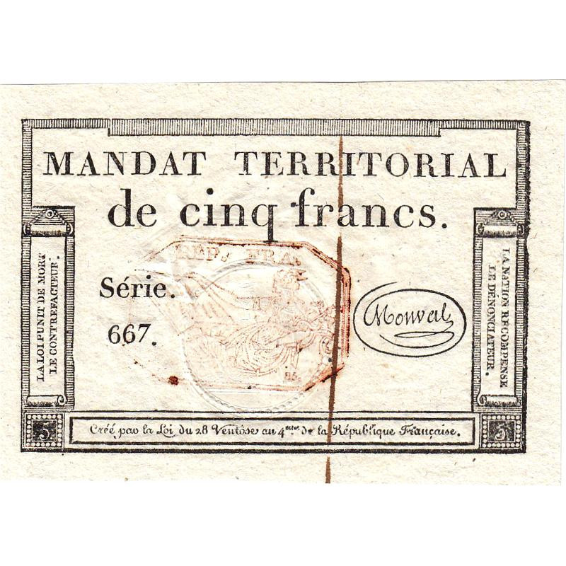 Mandat Territorial de 5 francs avec cachet fiscal rouge