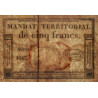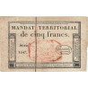 Mandat Territorial de 5 francs avec cachet fiscal rouge