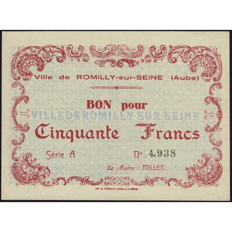 10 - Romilly-sur-Seine - Kolsky 101 - 50 francs - Série A - 24/06/1940 - Etat : SPL+