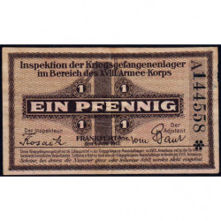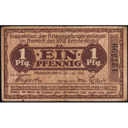 Aperçu rapide Allemagne - Camp de prisonniers WW1 - Francfort - 1 pfennig - 01/01/1917 - Etat : TB+ 5,00 € RUPTURE