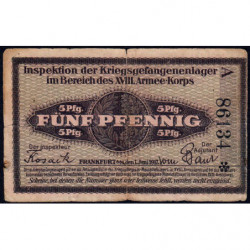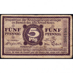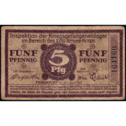 Aperçu rapide Allemagne - Camp de prisonniers WW1 - Francfort - 5 pfennig - 01/01/1917 - Etat : TB+ 5,00 € RUPTURE