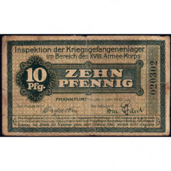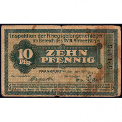 Aperçu rapide Allemagne - Camp de prisonniers WW1 - Francfort - 10 pfennig - 01/01/1917 - Etat : TB+ 5,00 € RUPTURE
