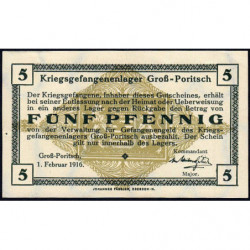 Aperçu rapide Allemagne - Camp de prisonniers WW1 - Gross-Poritsch - 5 pfennig - 01/02/1916 - Etat : SPL 8,00 € RUPTURE