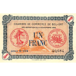 Aperçu rapide Belfort - Pirot 23-37 - 1 franc - Série D 104 - 04/11/1918 - Etat : TTB 5,00 € RUPTURE