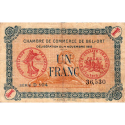 Aperçu rapide Belfort - Pirot 23-37 - 1 franc - Série D 104 - 04/11/1918 - Etat : TB- 2,00 € RUPTURE