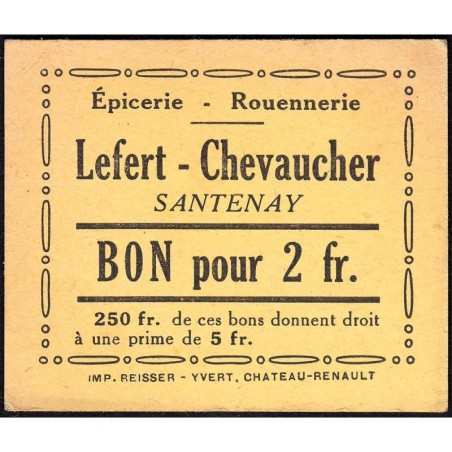 • 21 - Santenay - Epicerie Lefert Chevaucher - 2 francs - 1920/1930 - Etat : SPL+