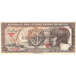 Aperçu rapide Brésil - Pick 158c - 5 cruzeiros - Série 1344 - Estampa 2 - 1957 - Etat : NEUF 6,00 €