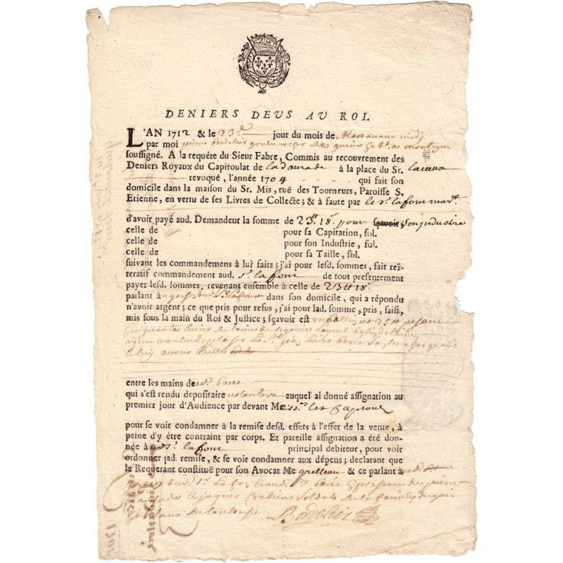 Haute-Garonne - Toulouse - Louis XIV - 1712 - Deniers dus au Roi - 23 livres - Etat : TTB+