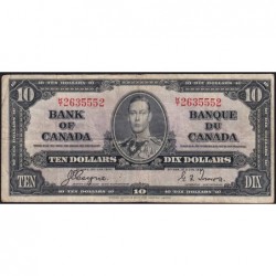 Aperçu rapide Canada - Pick S 692b - 10 dollars - Sans série - 02/01/1937 - Etat : TB 130,00 € RUPTURE