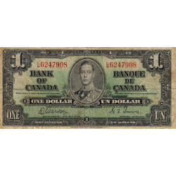 Aperçu rapide Canada - Pick 58e - 1 dollar - Série R/N - 02/01/1937 (1950) - Etat : TB- 12,00 € RUPTURE