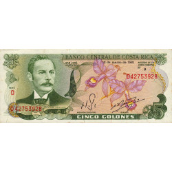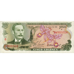 Aperçu rapide Costa Rica - Pick 236d_15 - 5 colones - Série D - 07/04/1983 - Etat : SPL 2,50 € RUPTURE