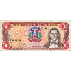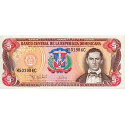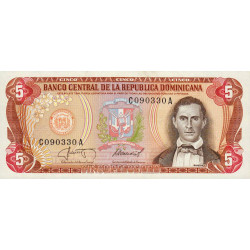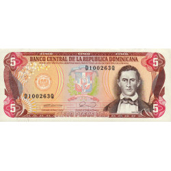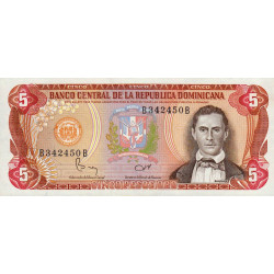 Aperçu rapide Rép. Dominicaine - Pick 109a_1 - 5 pesos oro - Série VV - 1975 - Etat : pr.NEUF 40,00 € RUPTURE