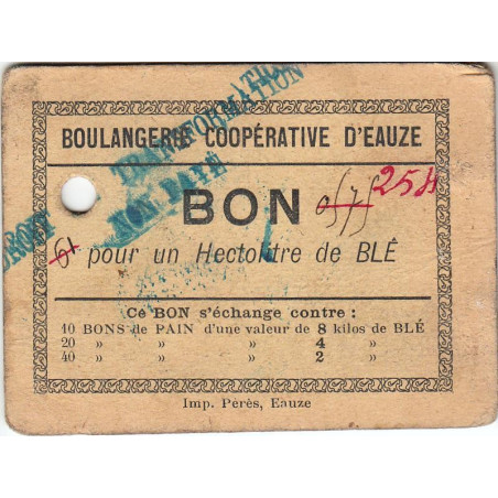 32 - Eauze - Boulangerie Coopérative - Bon pour 1 hectolitre de blé - Type 3 - Etat : TB+