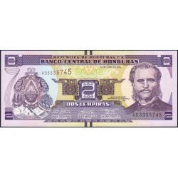 Aperçu rapide Honduras - Pick 80Ac - 2 lempiras - Série K - 30/08/2001 - Etat : NEUF 2,00 € RUPTURE