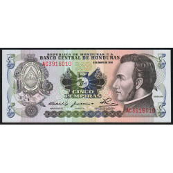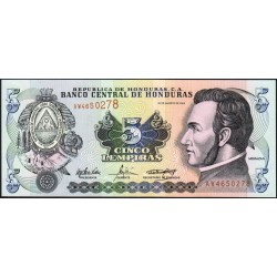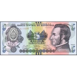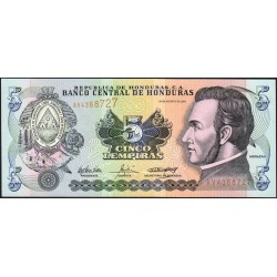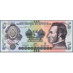 Aperçu rapide Honduras - Pick 81b - 5 lempiras - Série AH - 18/09/1997 - Etat : NEUF 5,00 € RUPTURE