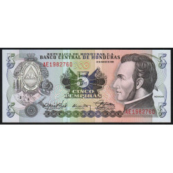 Aperçu rapide Honduras - Pick 63b - 5 lempiras - Série AE - 30/03/1989 - Etat : NEUF 9,00 € RUPTURE