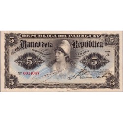 Aperçu rapide Paraguay - Pick 195b_1 - 5 guaranies - Série A - 25/03/1952 (1963) - Etat : NEUF 4,00 €