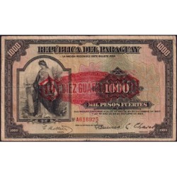 Aperçu rapide Paraguay - Pick 176_1 - 10 guaranies sur 1'000 pesos fuertes - Série A - 1943 - Etat : TB- à TB 140,00 € RUPTURE